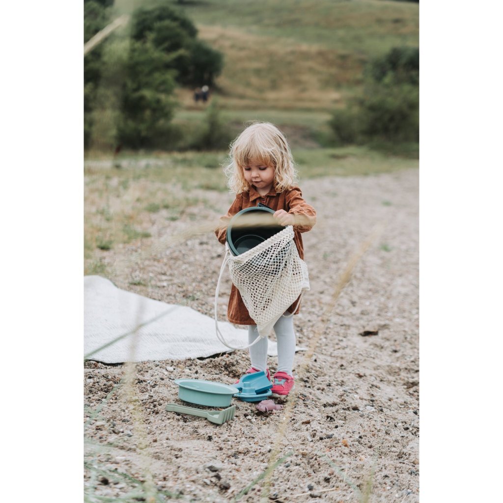 Leuke zandspeelset bestaande uit een emmertje, een harkje, een schepje, een zeef, een krab-zandvorm en een bootje. Geschikt voor kinderen vanaf 3 jaar.