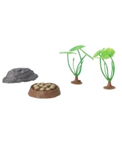 De set bestaat uit 4 dinosaurussen: T-Rex, Brachiosaurus, Stegosaurus en ankylosaurus. Daarnaast bevat de set rotsen, een nest en 2 planten om landschap na te bootsen. Gemaakt van stevig kunststof. Geschikt voor kinderen vanaf 3 jaar.
