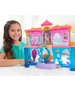 Een stapelbaar poppenhuis in klein formaat. De bovenkant van het kasteel is de wereld boven water en de onderkant is de wereld onder de zee. Met meubels, speelonderdelen, Botje en Ariel met 2 outfits. Geschikt voor kinderen vanaf 3 jaar.
