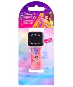 Stap binnen in een betoverende wereld van tijd en elegantie met het roze Disney Princess LED horloge! Dit schitterende horloge combineert functionaliteit met de magie van Disney prinsessen, waardoor het een onmisbare accessoire is voor elke jonge prinses. Met een vierkant schermpje en afgeronde hoekjes straalt dit horloge een tijdloze charme uit. Het roze bandje is liefdevol versierd met afbeeldingen van al je favoriete Disney prinsessen, elk met hun kenmerkende stijl en glimlach.
