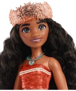 Deze Vaiana pop is geïnspireerd op de gedreven en onafhankelijke heldin uit de populaire Disney film! De beweegbare modepop heeft haar bekende tweedelige outfit en accessoires zoals een hoofdband en ketting. In haar bekende look uit de film is deze Vaiana pop klaar voor elk avontuur dat zich aandient! Pop kan niet los staan. Kleuren en versieringen kunnen variëren. Geschikt voor kinderen vanaf 3 jaar.