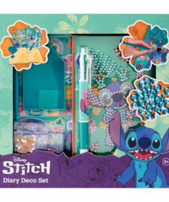 Met deze leuke set kun je je notebook helemaal persoonlijk en sprankelend maken. Het Diamond Painting-deel van de set bevat alles wat je nodig hebt om een schitterend ontwerp te maken: – Diamantjes in verschillende kleuren – Diamond pen om de steentjes precies op hun plek te leggen – Wax voor extra grip – Diamond bakje om de steentjes overzichtelijk te houden. Naast het diamond painting-gedeelte kun je je notities ook extra vrolijk maken met het bijgeleverde Stitch stickervel, vol schattige stickers van Stitch en zijn vriendjes. En natuurlijk mag een pen niet ontbreken! In deze set zit een multi-colour pen, waarmee je in meerdere kleuren kunt schrijven. Zo worden al je notities, aantekeningen of tekeningen net zo vrolijk en kleurrijk als Stitch zelf! Of je nu van knutselen houdt, je notebook wilt pimpen of gewoon een beetje glitter en vrolijkheid aan je dag wilt toevoegen, deze set is perfect voor echte Stitch-fans. Geschikt voor kinderen vanaf 3 jaar.