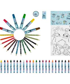 Deze Disney Stitch kleurkoffer zit boordevol kleurplezier. Deze kleurset is een geweldig cadeau voor kinderen vooral voor Stitch fans. De draagbare koffer zorgt ervoor dat alle spullen netjes bij elkaar blijven, makkelijk te pakken zijn en nóg makkelijker zijn mee te nemen. De set bestaat uit 12 mini kleurpotloden, 6 stiften, 24 krijtjes, een stukje gum, 2 mini potloden, een puntenslijper, 1 stickervel en 4 posters. Afmeting van de koffer is 38 x 22 x 4 cm. Geschikt voor kinderen vanaf 3 jaar.