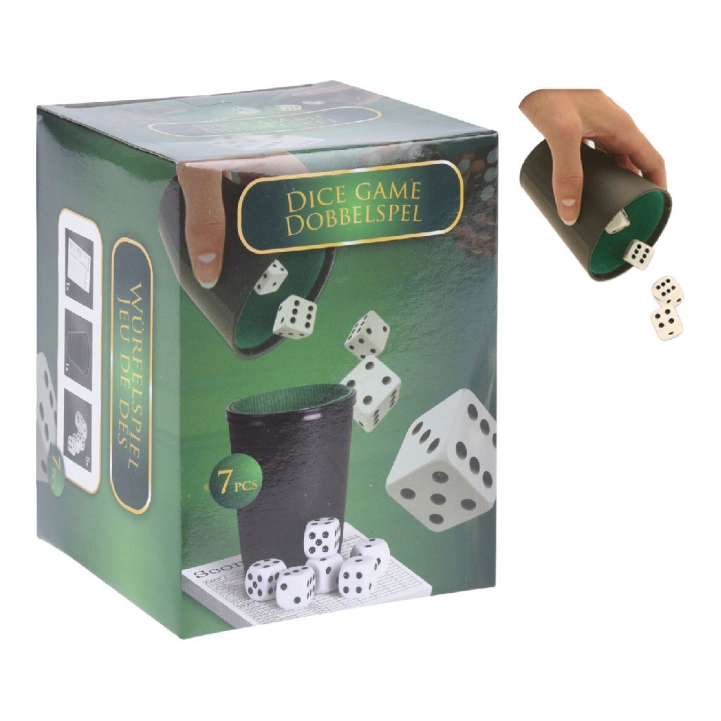 De set bestaat uit dobbelbeker met 5 dobbelstenen en een scoreblok. Voor 1 tot 6 spelers vanaf 5 jaar.