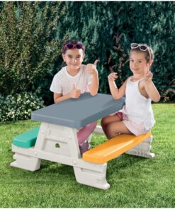 Maar de voordelen houden daar niet op! Deze picknicktafel voor kinderen is niet alleen voor maaltijden en snacks, het is een platform voor creativiteit en groei. Stimuleer de verbeeldingskracht en dramavaardigheden van uw kind terwijl ze nep-picknicks organiseren of spelletjes spelen rond de tafel. Kleur: Multi