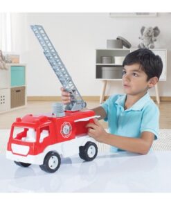 Laat de fantasie van je kleine de vrije loop en blus alle brandjes in de buurt. Met de extra lange uitschuifbare ladder van wel 53 cm kunnen zelfs de hoogste hoogtes bereikt worden! De wagen is 38 cm groot en heeft zelfs een waterpomp voor extra speelplezier. Vul het waterreservoir en laat met de pomp het water door de brandweerslang stromen! Kleur: rood/wit. Geschikt voor kinderen vanaf 2 jaar.