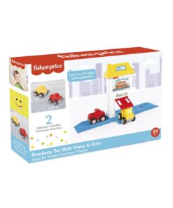 Dolu Fisher Price auto speelset met wegdeel, 2 auto’s en huis met een poort. Geschikt voor kinderen vanaf 2 jaar.