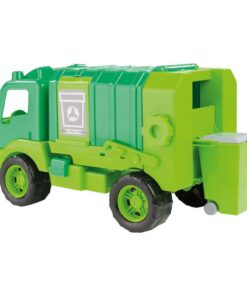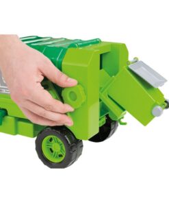 De vuilniswagen is herkenbaar groen van kleur en heeft eindeloze mogelijkheden. De achterklep kan namelijk open, de bak kan kantelen en hij wordt geleverd met afvalcontainer die zelfs in de wagen geleegd kan worden! Zowel de bak als de klep kunnen vergrendeld worden zodat de wagen veilig verder kan rijden. Lengte: 43 cm. Geschikt voor kinderen vanaf 18 maanden.