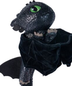 Maak een vlucht met Tandloos. Deze innovatieve knuffel verbeeldt de iconische draak uit Hoe tem je een draak met levensechte details uit de film, waaronder zacht zwart pluche met glanzende schubben, vilten klauwen en heldergroene geborduurde ogen. Tandloos is klaar om te vliegen met grote, fluweelzachte vleugels met een spanwijdte van 41 cm, zodat hij kan zweven en je mee kan nemen naar het eiland Berk. Steek gewoon twee vingers onder zijn voorste klauwen, trek naar achteren en laat los zodat Tandloos door de lucht zweeft. Zijn zachte vleugels krullen vervolgens met een klik naar binnen en klemmen om je arm als het tijd is voor een stevige knuffel. Geschikt voor kinderen vanaf 4 jaar.