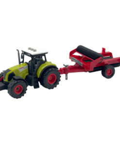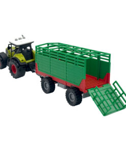 Prachtige groene tractor met aanhanger uit de Dutch Farm Line: een veetrailer of een weilandroller. Deze realistische set heeft een schaal van 1:36 en is gemaakt van stevig kunststof en voorzien van robuuste banden. Ook heeft de tractor licht en geluid (incl. 3 knoopcel batterijen). Geschikt voor kinderen vanaf 5 jaar. Verkrijgbaar in twee uitvoeringen. U kunt niet kiezen, maar ontvangt een willekeurige uitvoering.