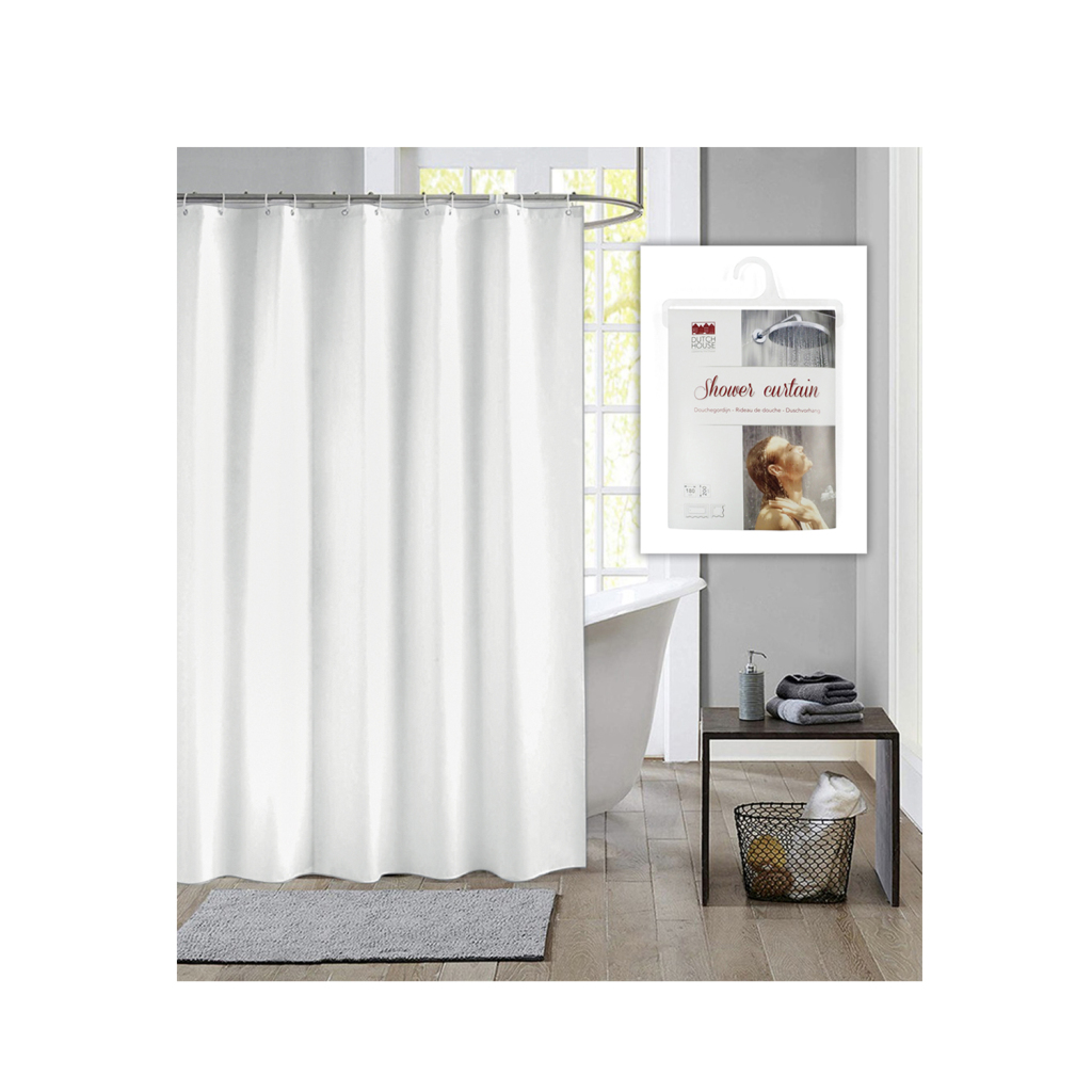 Dutch House douchegordijn Damast in een effen witte kleur. Het douchegordijn is waterafstotend en voorzien van 12 ringen en een loodveter. Staat vanwege de neutrale kleur goed in elke badkamer!
