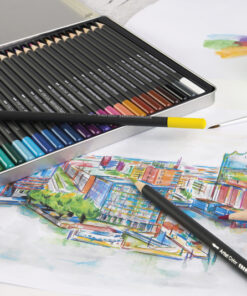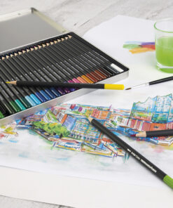 Aquarelpotloden bijzonder geschikt voor schilder- en tekenlessen. Met water te mengen, behouden zowel droog als nat hun intensieve en briljante kleur. Breukvast en makkelijk te slijpen. ook te gebruiken op leisteen en kunststof. In metalen etui met 24 potloden.