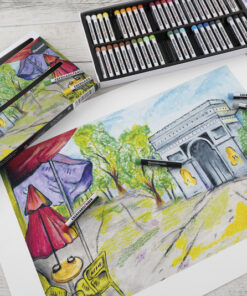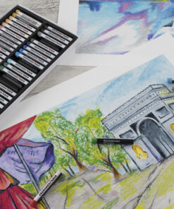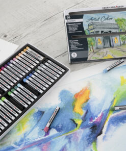 Oliepastelkrijt, zeer intensieve kleuren en te gebruiken op alle gladde oppervlakken, watervast, breukvast en het krijt is met papier omwikkelt. Krijt van Ø 9 mm, en 70 mm lang. Verpakt in kartonnen etui. 50 stuks.