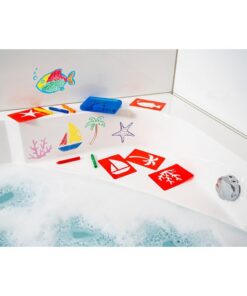 Deze krijtjes zijn onmisbaar voor kleine kunstenaars. Ze gaan mee in bad en vormen de saaie witte badwand om tot een prachtig kunstwerk? is het nou niet zo mooi als verwacht, superhandig de tekening is heel makkelijk af te wassen! Deze set bevat 10 krijtjes in allemaal verschillende kleuren en 5 patronen. De patronen plakken gemakkelijk met water op de bad / douche wand en zijn ook weer gemakkelijk te verwijderen. Ze kunnen worden hergebruikt. De set wordt geleverd in een handige kunststof opbergbox.
