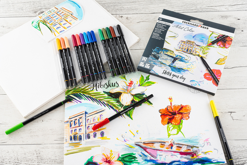 De productlijn Artist Color is ontwikkeld voor semiprofessionele kunstenaars, studenten en scholieren. Door de hoge kwaliteit van het product is er geen beperking aan creativiteit. Artist Color maakt schilderen en tekenen op een hoog niveau mogelijk: of het nu gaat om grafisch ontwerp, fijn tekenen of kleurrijke aquarel kunstwerken. De kleuren zijn lichtecht. Deze set van 18 dubbelzijdige Sketchmarkers in verschillende kleuren kunnen met elkaar worden gemengd en worden gebruikt voor aquarellen. Je kan ermee tekenen/kleuren en daarna nog bewerken met water i.c.m. een penseel. De markers hebben een fijne punt voor precieze lijnen en een brede en flexibele penseelpunt (brushpunt) geschikt voor verschillende lijnbreedtes. Deze Sketchmarkers zijn bijzonder geschikt voor handlettering, creatief ontwerpen en schrijven, striptekenen en aquarelleren.