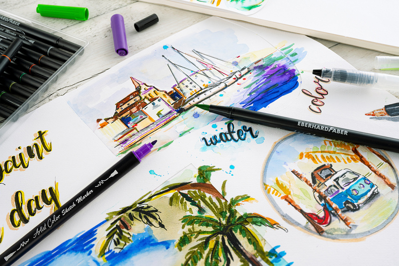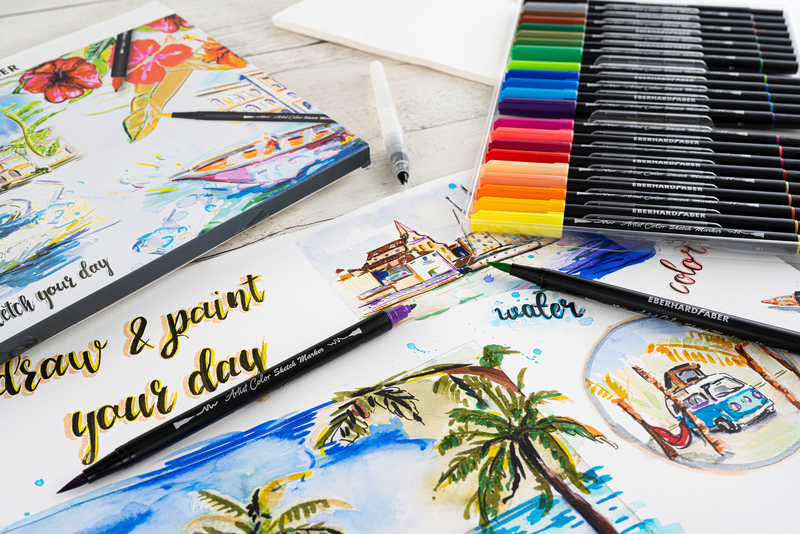 De productlijn Artist Color is ontwikkeld voor semiprofessionele kunstenaars, studenten en scholieren. Door de hoge kwaliteit van het product is er geen beperking aan creativiteit. Artist Color maakt schilderen en tekenen op een hoog niveau mogelijk: of het nu gaat om grafisch ontwerp, fijn tekenen of kleurrijke aquarel kunstwerken. De kleuren zijn lichtecht. Deze set van 24 dubbelzijdige Sketchmarkers in verschillende kleuren kunnen met elkaar worden gemengd en worden gebruikt voor aquarellen. Je kan ermee tekenen/kleuren en daarna nog bewerken met water i.c.m. een penseel. De markers hebben een fijne punt voor precieze lijnen en een brede en flexibele penseelpunt (brushpunt) geschikt voor verschillende lijnbreedtes. Deze Sketchmarkers zijn bijzonder geschikt voor handlettering, creatief ontwerpen en schrijven, striptekenen en aquarelleren.