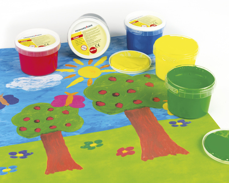 Vingerverf is een waardevol speelmiddel voor thuis en op school. Men kleurt met de vingers maar men kan ook sponsjes, spatels of penselen gebruiken. Doordat de verf een goede dekking heeft kan men deze goed gebruiken op papier, hout of glas. Handen, ramen en kunstattributen kunnen gemakkelijk gewassen worden met water en zeep. Goed mengbaar, sneldrogend en uitwasbaar. Hoogste kleurbriljantie. Verkrijgbaar in een kartonnen doosje met potjes van 100ml. Kleuren geel, rood, blauw en groen.
