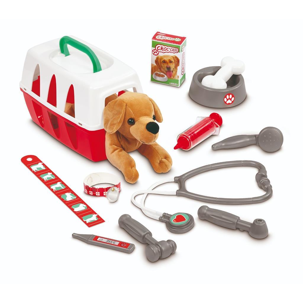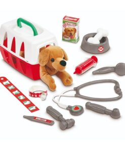 Ga jij de dokter helpen om de hond weer beter te krijgen? Gebruik de thermometer om te controleren of het dier koorts heeft, luister met stethoscoop of hij nog goed ademt. Stop hem daarna weer in zijn reismand, zodat hij zijn rust krijgt. Met deze 14-delige set zorg je ervoor dat jouw hond altijd gezond is. Geschikt voor kinderen vanaf 18 maanden.