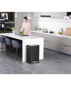 Een stijlvolle rechthoekige pedaalemmer met extra breed pedaal en twee kunststof binnenemmers (2x 20 liter). Voorzien van gedempt sluitend deksel en stay-open functie. De pedaalemmer van geborsteld RVS is voorzien van fingerprint proof coating en nano zilver anti-bacteriële coating. De siliconen afdichtingsring zorgt voor het effectief vasthouden van nare luchtjes in de afvalbak. Tevens zit er een ingebouwd geurfilter in het deksel. De opklapbare rand houdt de bak open voor het makkelijk verwisselen van de afvalzak en/of het uitnemen van de binnenemmers.