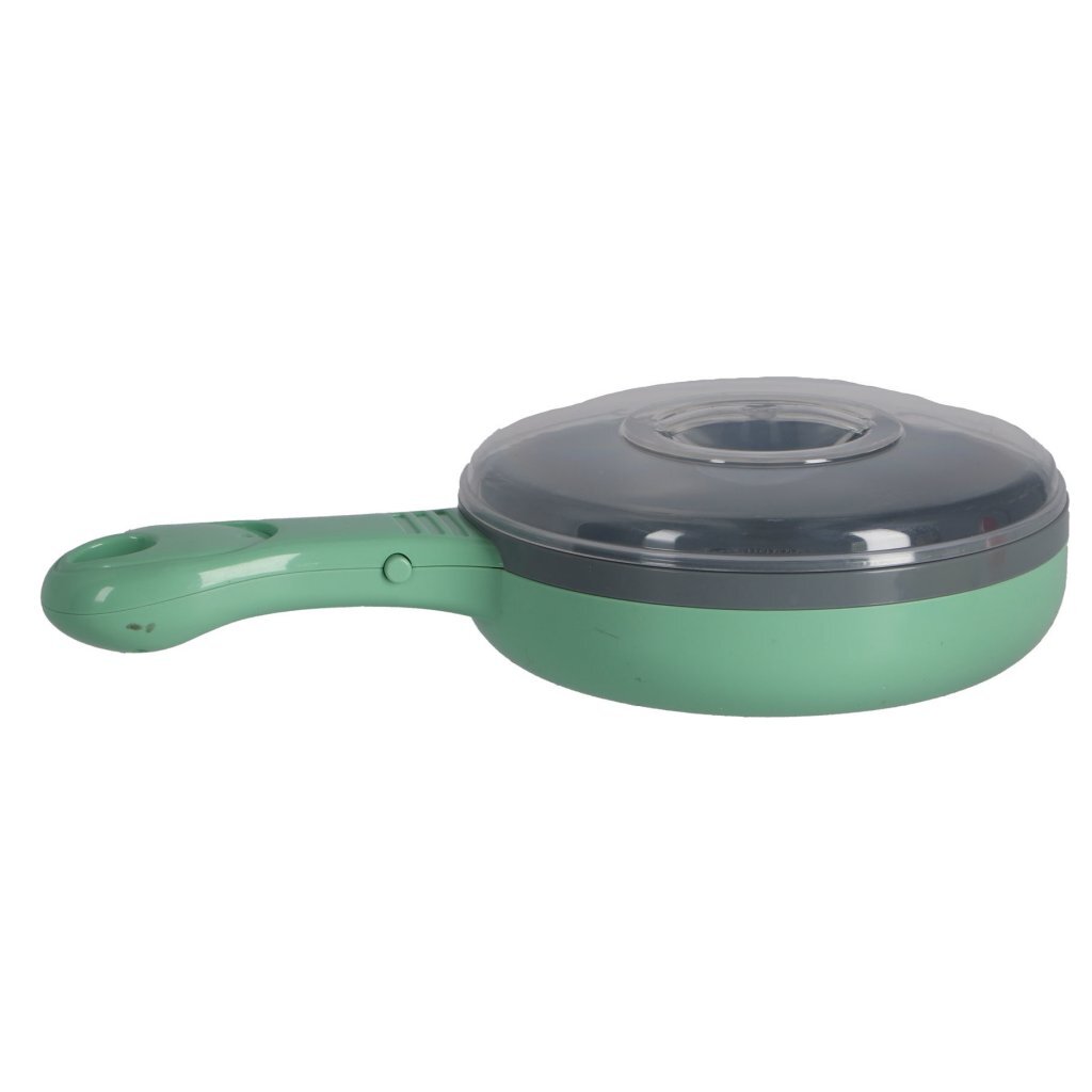 Leuke speelset bestaande uit een elektronische koekenpan met deksel (mintkleur), een bordje, een flesje ketchup, een steak, een visje en 2 worstjes. De worstjes, vis en steak veranderen van kleur wanneer ze warmer worden. Batterijen (2x AAA) niet inbegrepen. Geschikt voor kinderen vanaf 3 jaar.