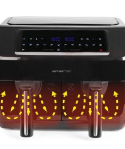 Deze Emerio AF-130376.1 dubbele heteluchtfriteusemaakt het mogelijk om gezonder te bakken, braden, grillen, koken en braden. De inhoud van 2x 3,6 liter maakt het mogelijk om tot wel 8 porties knapperige en heerlijke frietjes in één keer te maken. Dankzij het digitale display is het bereiden van gerechten in de airfryer eenvoudig en intuitief. Gezond eten bereiden is nog nooit zo gemakkelijk geweest.