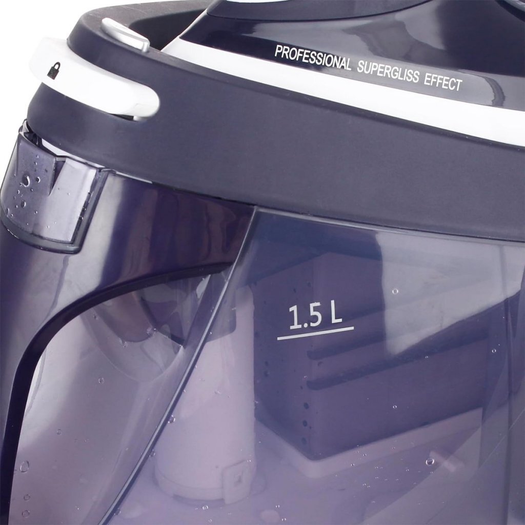Een krachtige en gebruiksvriendelijke strijkijzer dat perfect is voor het snel en eenvoudig gladstrijken van al je kleding. Met een vermogen van 2200 Watt en een stoomdruk van 5,5 bar, dringt de stoom diep door de stof heen, waardoor zelfs de meest hardnekkige kreukels verdwijnen. Destoomgenerator heeft een waterreservoir van 1500 ml, waardoor je lang kunt strijken zonder bij te hoeven vullen. De afneembare watertank maakt het bijvullen eenvoudig en snel. De thermostaat is verstelbaar, zodat je de temperatuur kunt aanpassen aan de verschillende stoffen die je strijkt.De keramische strijkzool glijdt soepel over alle stoffen en zorgt voor een optimale warmteverdeling. De stoomstootfunctie is ideaal voor het verwijderen van hardnekkige kreukels en het opfrissen van delicate stoffen.