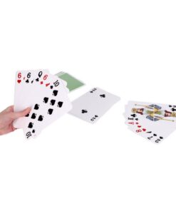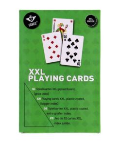 Volledig deck speelkaarten van extra groot formaat. Deze kaarten van 18,5 bij 12 cm zijn extra handig voor mensen kinderen of ouderen met minder goede ogen, maar ook gewoon leuk om een potje mee te Pesten of Jokeren! Geschikt voor kinderen vanaf 6 jaar.