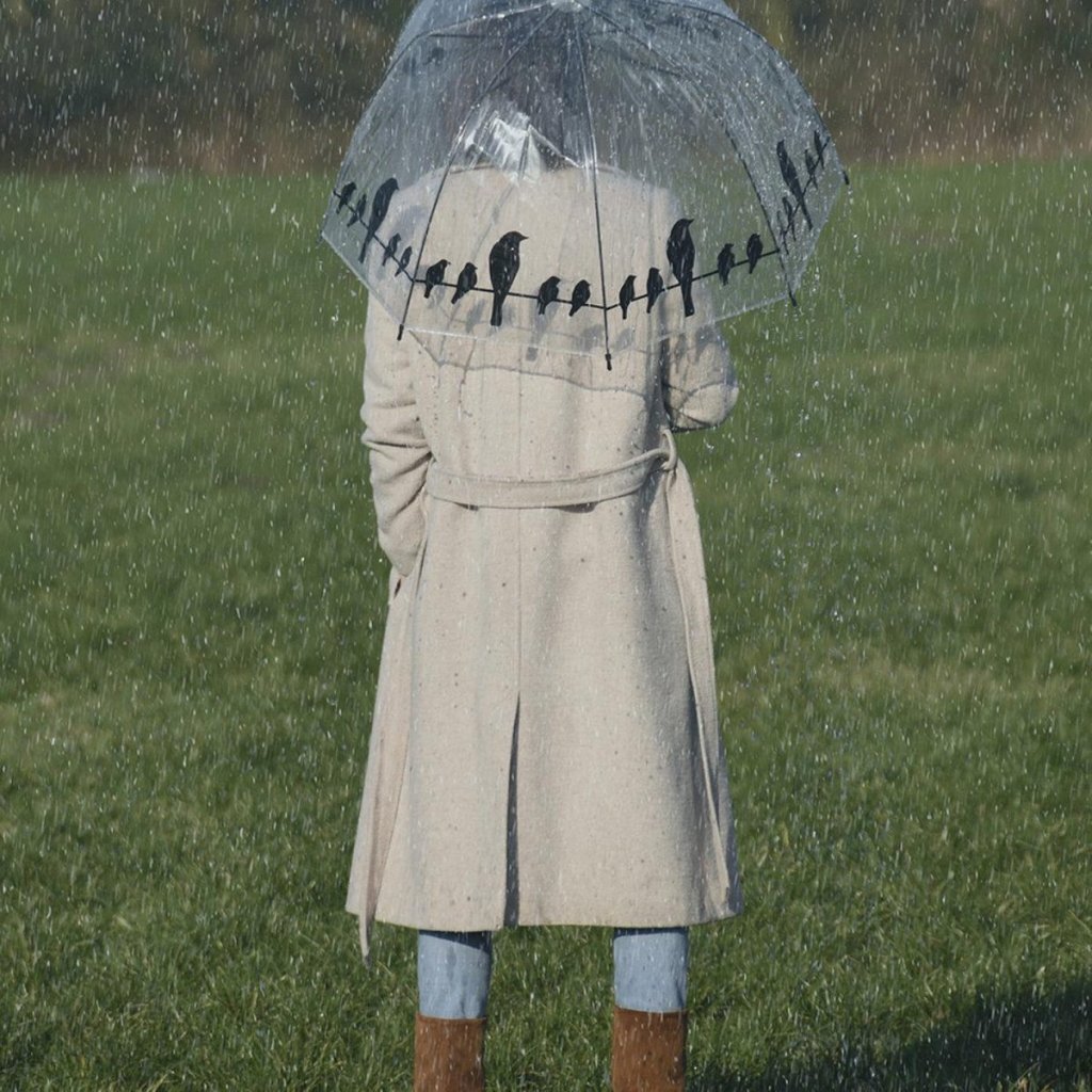Met deze transparante bedrukte paraplu, is zelfs een wandeling in de regen een plezier. De print laat zwarte silhouetten van vogels op draad zien. Dankzij het doorzichtige materiaal krijg je ook mee wat er in je omgeving gebeurt. Afmeting: 83 x 83 x 81,5 cm.