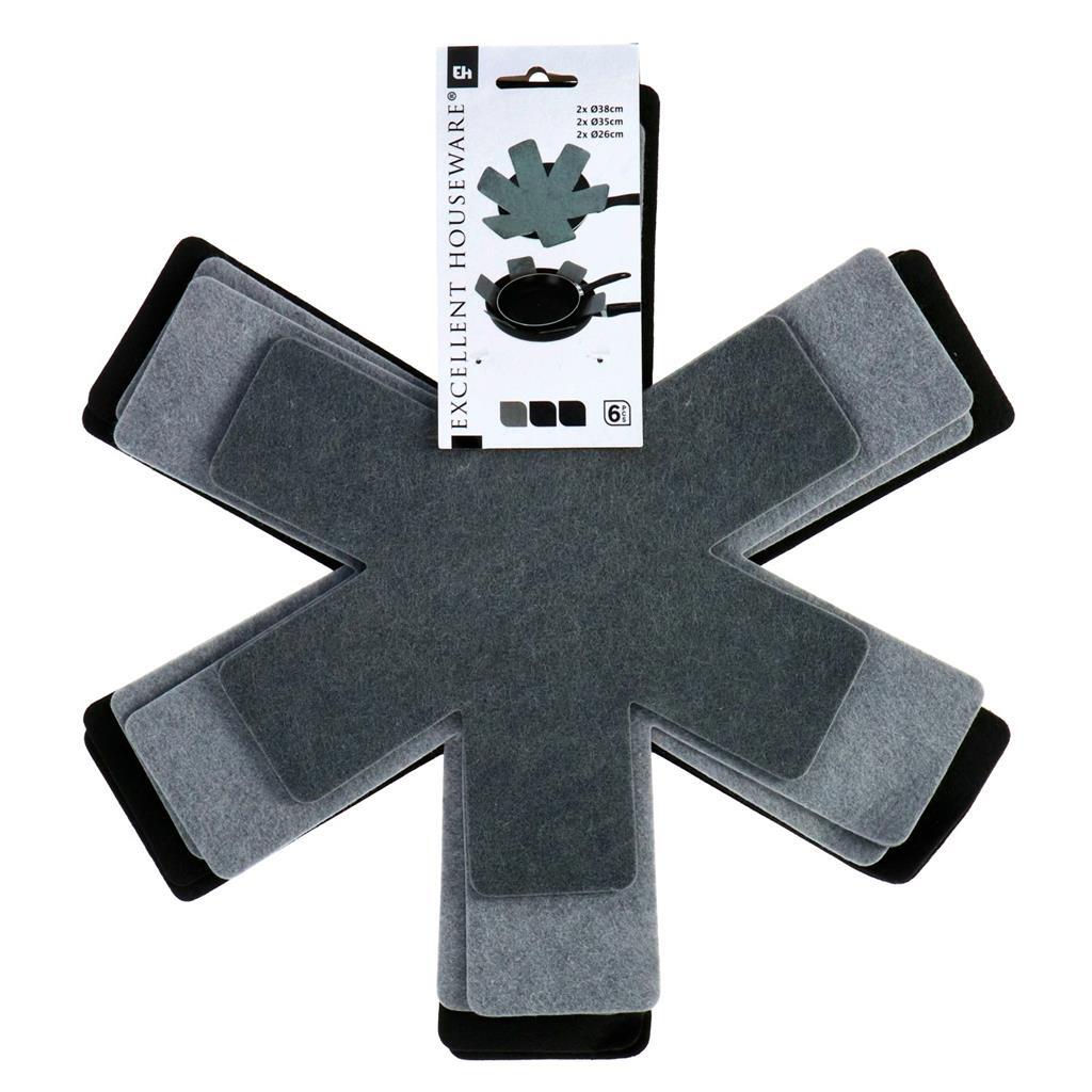 Excellent Houseware zwart-grijze panbeschermers met een diameter van 38, 35 en 26 cm. Inhoud: 6 stuks.