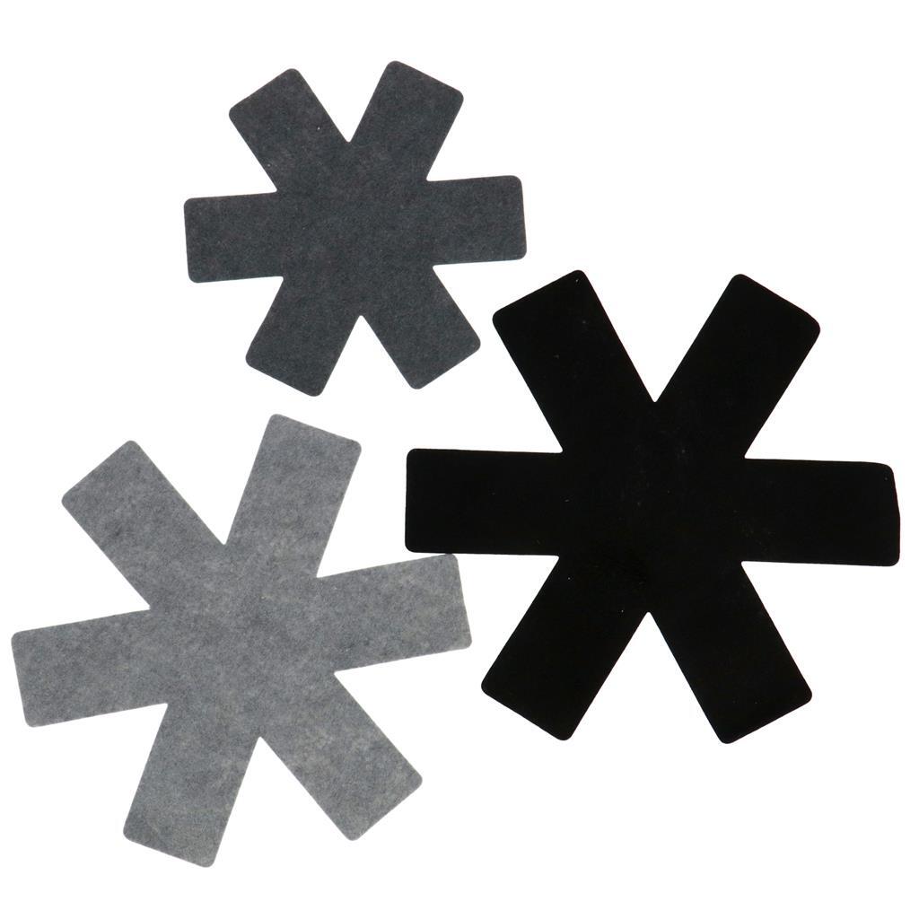 Excellent Houseware zwart-grijze panbeschermers met een diameter van 38, 35 en 26 cm. Inhoud: 6 stuks.