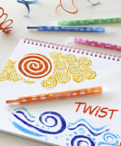 Draaibare waskrijtjes in een etui van 24 stuks. Ronde vorm en in heldere kleuren. (incl. goud, zilver en 5 neon kleuren.