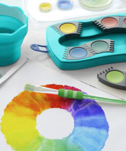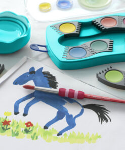Deze waterverfdoos is niet alleen erg leuk maar ook nog eens super leerzaam. De verfpotjes kunnen individueel worden gecombineerd en helpen kinderen zo spelenderwijs kleuren te leren kennen. De briljante kleuren hebben een hoge dekking en kunnen perfect worden gemengd, waardoor ze ideaal geschikt zijn voor alle technieken en toepassingen op school en thuis. De deksel is een deksel en palet in één, je kan 5 kleuren mengen en om te kijken of je de juiste kleur hebt gemend kan je deze aanbrengen op het transparante gedeelte in de deksel (de deksel is gemakkelijk afneembaar). Deze set bevat ook 1 tube verf in de kleur wit. Deze set heeft 12 verschillende kleuren.