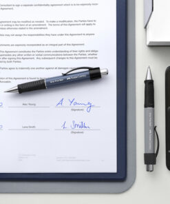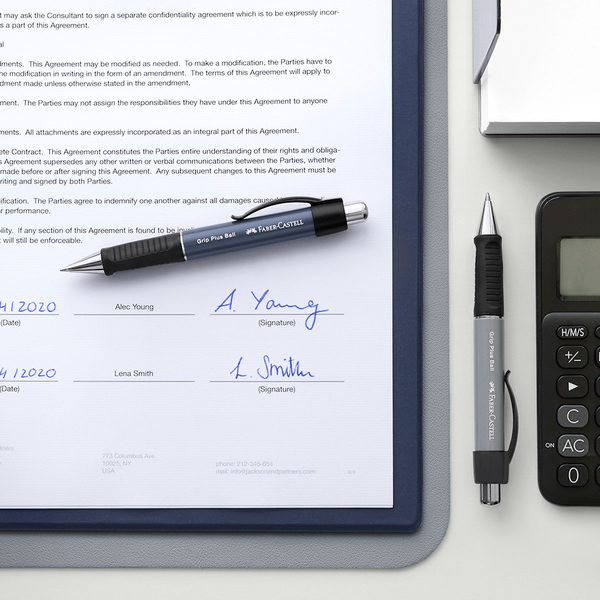 Dankzij de ergonomische, driekantige rubberen gripzone zorgt de balpen GRIP voor urenlang onvermoeid schrijven. De pen heeft een drukknop en is voorzien van een clip. Standaard balpenvulling met documentechte inkt. Schrijfdikte M. Schrijfkleur blauw. Houderkleur steengrijs.