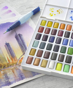 Deze box wordt geleverd met palet. De deksel is namelijk afneembaar waardoor je een palet hebt. Tevens ook makkelijk om schoon te maken. De kleuren zijn helder en volledig wateroplosbaar. De verf is perfect mengbaar voor lichte en donkere kleuren. Deze set bevat ook een waterpenseel van hoge kwaliteit. Inclusief neon en metallic kleuren.