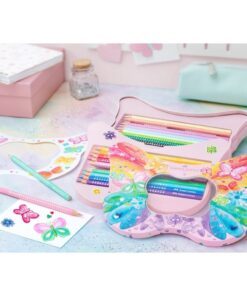 - Set van 12 pastelkleur potloden, verpakt in bewaarblik ‘vlinder’ inclusief vlinder stickers