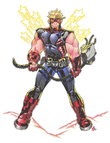 Comic 3D set met 11 stuks. 1x Goldfaber grafietpotlood 2B, 1x stofvrije blauwe gum, 1x puntenslijper metaal, 2x Pitt Artist Pen zwart (B, S), 1x Pitt Artist Pen wit, 1x Pitt Artist Pen koudgrijs VI, 3x Goldfaber Aqua kleurpotloden geel, rood en blauw. De set is ontworpen door een bekende Comic illustrator uit Peru.