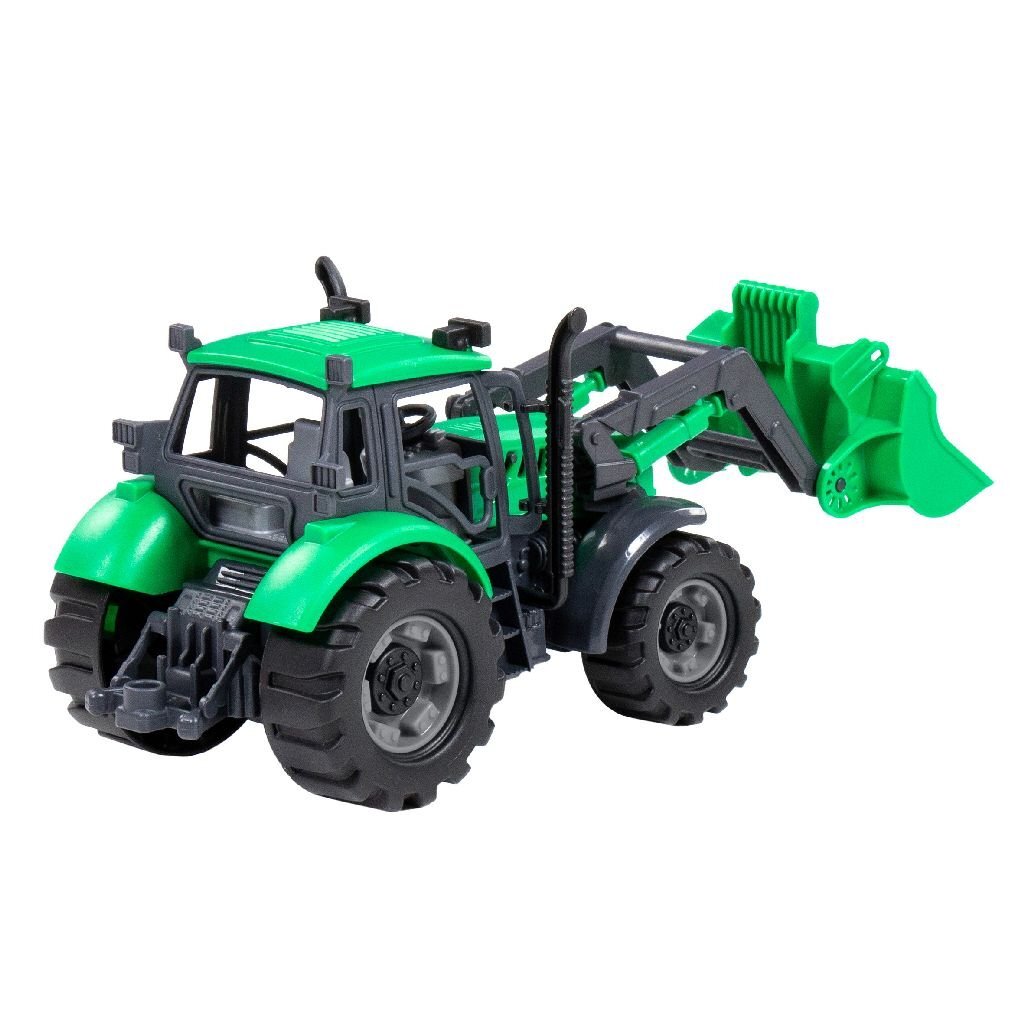 Veel speelplezier met deze mooie Farmer groen-zwarte frictietractor met lader
