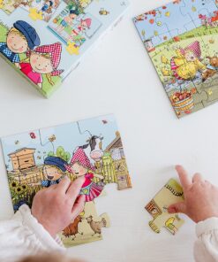 Deze set bestaat uit 4 puzzels met elk een kleurrijke afbeelding uit de serie Fienen Teun tijdens de verschillende jaargetijden lente, zomer, herfst en winter. Puzzelen is een van de eerste bezigheden waarmee een kind de motoriek traint. De jongste puzzelaars beginnen met een puzzel van 4 stukken en wie toe is aan de volgende uitdaging kan een puzzel van 4, 6, 9 of 16 stukken leggen.