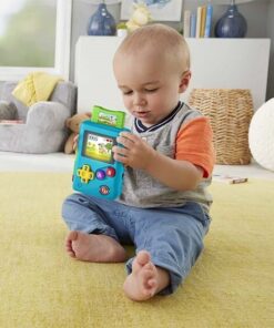 Deze gameconsole om vast te houden lijkt net echt met een D-pad, A- en B-knoppen, een spelcassette en een oplichtend scherm. Wanneer je baby of peuter op de knoppen drukt om een spelletje te ‘spelen’, komen er muziek, geluiden en zinnen uit de console waarmee je kleintje leert over instructies, kleur, cijfers en vormen. Het indrukken, bewegen en draaien van de knoppen en activiteiten stimuleert de behendigheid en oog-handcoördinatie van je kleintje. Kies een taal met de knop met een wereldbol: Nederlands, Frans, Duits, Italiaans of Engels