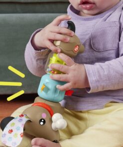 - Schud en draai de rammelende kralen en draai aan de staartklikker voor leuk zintuiglijk spel