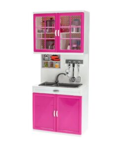 Dezegootsteen met kastjesis een onderdeel van de grotere Fleur keuken speelset. Hij kan gecombineerd worden met de andere elementen van de speelset om een volledige keuken te vormen, maar kan ook op zichzelf gebruikt worden. Geschikt voor kinderen vanaf 3 jaar.