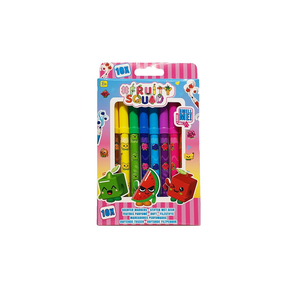 Fruity Squad stiften supertip met geur in 10 verschillende kleuren, met 10 verschillende geuren. Geschikt voor kinderen vanaf 3 jaar.