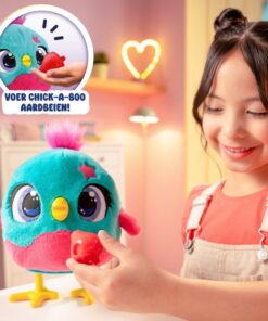 Voer haar met de aardbei en kijk hoe ze gaat zingen, dansen én eitjes legt met verrassingskuikentjes erin! Vang de eitjes op, laat ze uitkomen en ontdek de schattige babykuikentjes. Druk op haar kop en ze begint vrolijk te dansen op vrolijke liedjes. Kietel onder haar vleugels en hoor haar giechelen van plezier! Met meer dan 50 geluiden en reacties zorgt Chick a Boo keer op keer voor een verrassend, interactief speelavontuur. Stimuleert verzorgend spel en emotionele ontwikkeling. Geschikt voor kinderen vanaf 3 jaar.