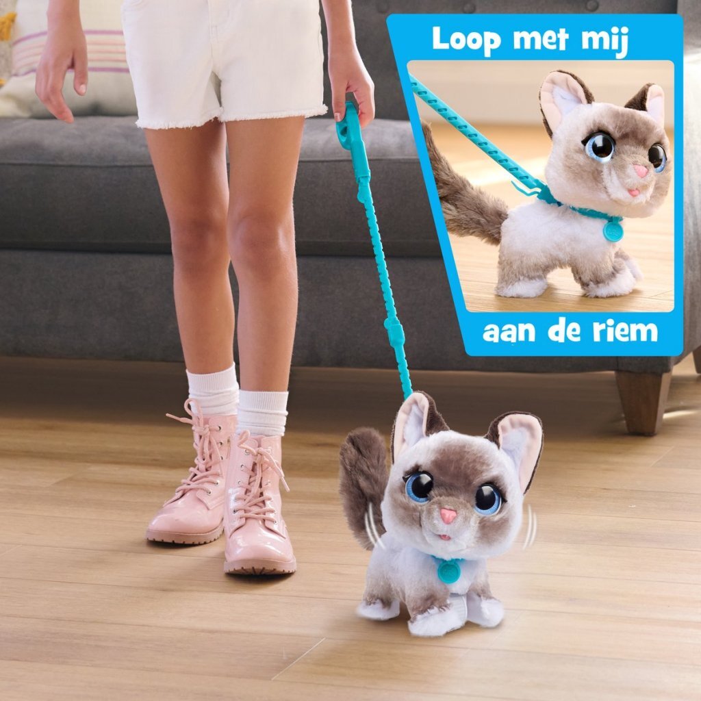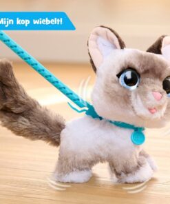 De schattige WagaLots Kitty heeft een superzachte vacht, sprankelende ogen en een halsband. Dit katje is niet alleen schattig, maar ook interactief en klaar voor een wandeling. Klik de meegeleverde riem op de halsband van Kitty, geef haar een zetje en ze loopt met je mee terwijl haar staart heen en weer zwaait net als een echte kat. Dit schattige, 20 cm grote katje miauwt, spint en maakt lieve geluidjes en miauwachtige geluidseffecten terwijl ze beweegt. De riemen van de andere FurReal huisdieren (los verkrijgbaar) kun je verbinden, zodat je meerdere huisdiertjes tegelijk kunt uitlaten. Kitty houdt erg van knuffelen en wil graag jouw beste vriendin worden! Geschikt voor kinderen vanaf 4 jaar.