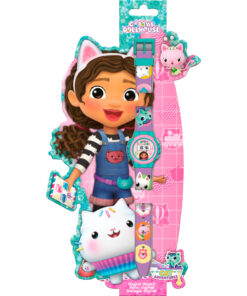Met dit Gabby’s Dollhouse digitaal horlogekom je nooit meer te laat. Op het horloge zie je prachtige illustraties van Cakey, Mercat, Pandy Paws en Kitty Fairy. Wordt inclusief 1 knoopcelbatterijen geleverd. Geschikt voor kinderen vanaf 3 jaar.