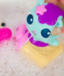 Deze leuke set bestaat uit badspeeltjes van Meerminkat en Pandy Poek, die zowel water spuiten als rechtop in het bad drijven. Knijp in Meerminkat en Pandy om water te spuiten. Je kunt zelfs hun zwembanden verwisselen. Geschikt voor kinderen vanaf 3 jaar.