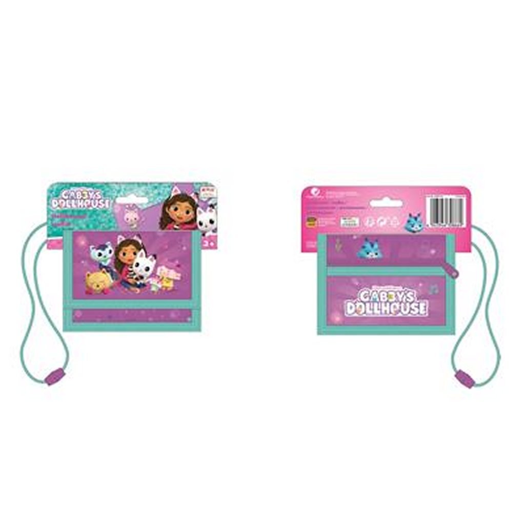 Gabby’s Dollhouse portemonnee met klittenbandsluiting. Met een groot vak, een vensterzak en een klein vakje. Kleur: roze/groen.