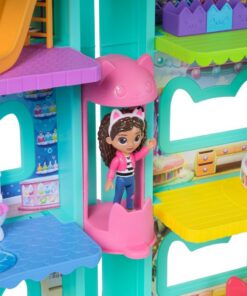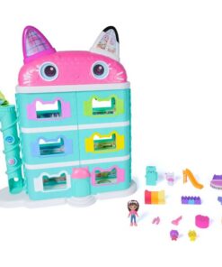 Dit poppenhuis is meer dan 60 cm hoog en heeft lenticulaire ogen voor spannend rollenspel! Geniet van spelen rondom met 7 thema-kamers en kat-terrific speelzones. Verken met de Kat-a-vator en stuur leveringen via de bezorgtoren! Deze poppenhuis-speelset wordt geleverd met een 9 cm Gabby-figuur, gekleed zoals in Gabby’s Dollhouse: De Film, compleet met haar iconische kattenoortjes haarband, die uitnodigt tot ontdekkingen met deze kat-terrific leertjes. Pak 2 poppenhuisleveringen uit, net zoals Gabby dat in de serie doet, om verrassende accessoires te vinden, en scan daarna de QR-code om een verrassing te ontgrendelen in de Gabbys Dollhouse-app. Deze set is een vrolijke manier om rollenspel te stimuleren en nodigt uit tot miauw-mazende avonturen, met deze schattige Gabby-kattenspeeltjes voor kinderen. Geschikt voor kinderen vanaf 3 jaar.