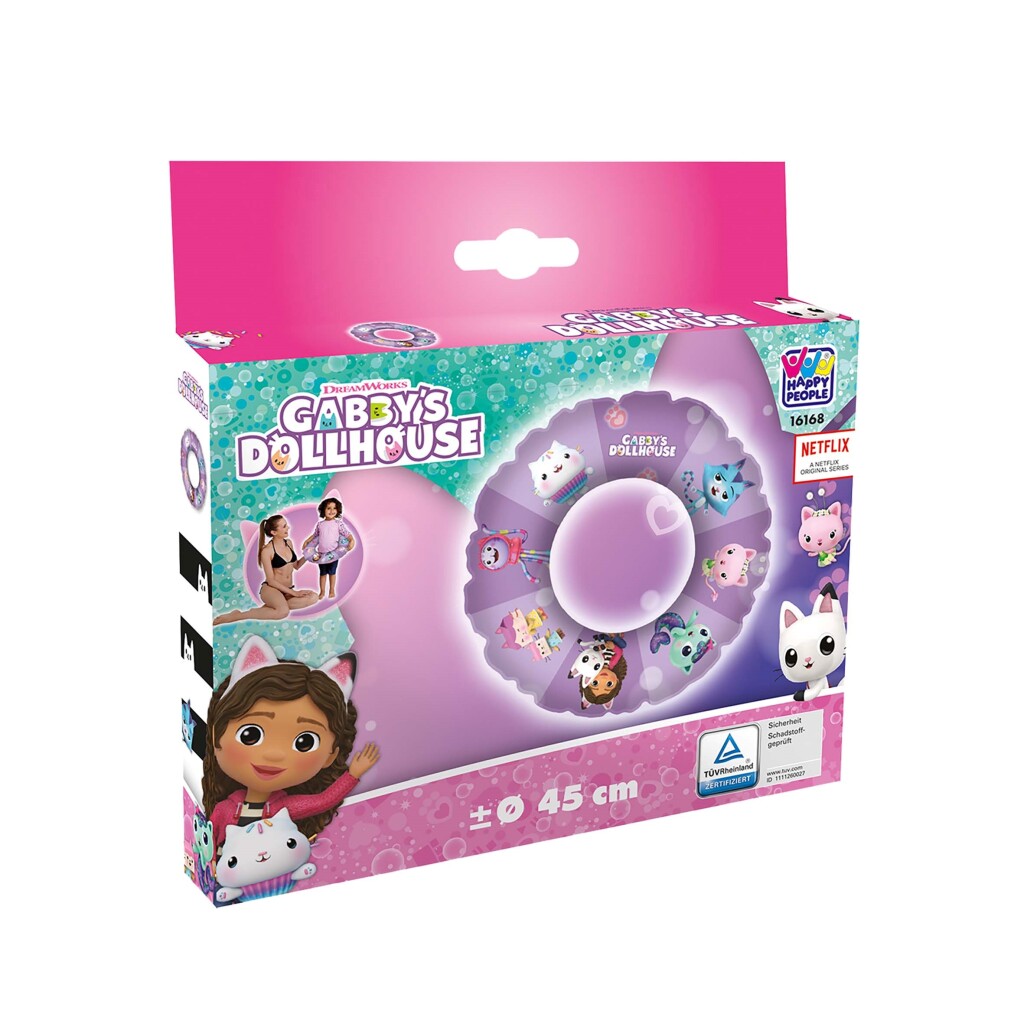 Leuke zwemring van Gabby’s Dollhouse. Het uiterlijk van deze zwemring is compleet met illustraties en paarse kleur van Gabby. Diameter ca. 45 cm. Geschikt voor kinderen vanaf 3 jaar.