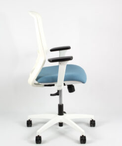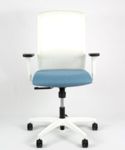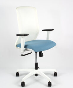 Bureaustoel Tekna White 01 zorgt voor een comfortabele zithouding de verstelbare lendesteun. De armleuningen zijn 3D verstelbaar (hoog/laag/voor/achter/links/rechts) en door het synchroon mechanisme is de stoel kantelbaar en met een draaiknop is de weerstand te regelen. Ook de rugleuning is verstelbaar waardoor deze bureaustoel geschikt is voor maximaal 8 uur zitcomfort. De stoel is vervaardigd van wit metaal en heeft een witte kunststof afwerking. Het onderstel is gemaakt van wit kunststof en voorzien van 5 wielen die geschikt zijn voor zachte vloeren. Het wollen zitvlak (49 x 44 cm) is een vlamvertragende polyester die zacht en warm is een slijtvastheidheeft van 60.000 zitcycli. De rugleuning is voorzien van netbespanning. Door de hendel onder de zitting is de luchtveer in hoogte individueel in te stellen van 43 tot 56 centimeter. De bureaustoel heeft een maximaal draagvermogen van 110 kg en weegt 10,9 kg. Kleur stof blauw/wit. De bureaustoel wordt geleverd met 5 jaar garantie en is voorzien van Arbo norm EN1335. Made in Italy.